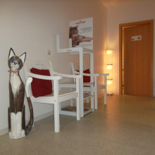 In unserer grosszügig geschnittenen und hellen Praxis sollen sich Tier und Besitzer wohlfühlen. Dazu gehören Parkplätze und der barrierefreie Eingang genauso, wie ein freundliches und grosses Wartezimmer, um Stress für Tier und Halter zu reduzieren.